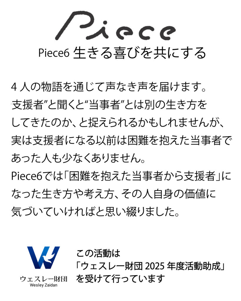 このPieceプロジェクトは「ウェスレー財団2025年度 活動助成金」の支援を受けて活動しております。